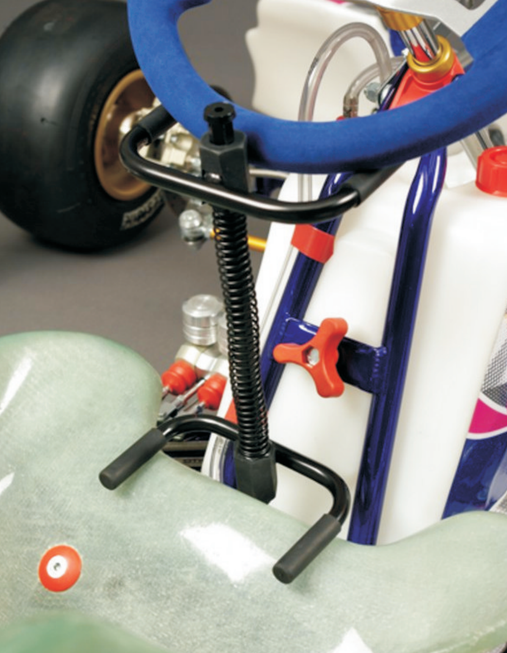 Steering wheel holder (or steering column support) for a go-kart. It is used primarily for holding the steering wheel steady...