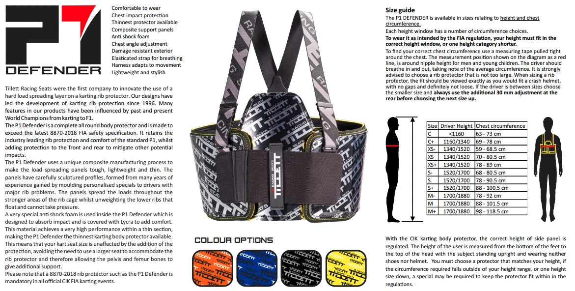 Tillett P1 Defender CIK FIK 8870 2018 Karting Body Protector EURO